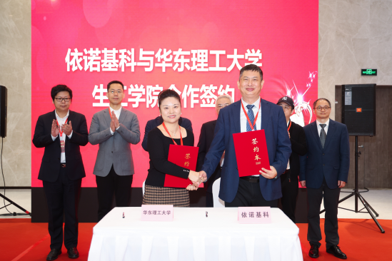 依诺基科董事长储消和教授、华东理工大学生物工程学院周英教授进行了依诺基科与华理合作的签约仪式。依诺基科与华东理工大学签署合作协议,将共同开展合成生物学领域的研究和人才培养工作,合作有助于推动科研成果的转化和应用,同时也有利于培养更多的专业人才。中国科学院邓子新院士在致辞中强调了依诺基科立足于合成生物发展的学科背景与前沿趋势下成立与发展的重大意义,并对依诺基科总部研发基地的启用表示祝贺,他指出依诺基科属于行业新秀,相信依诺基科的未来发展会给我们带来更多的惊喜。